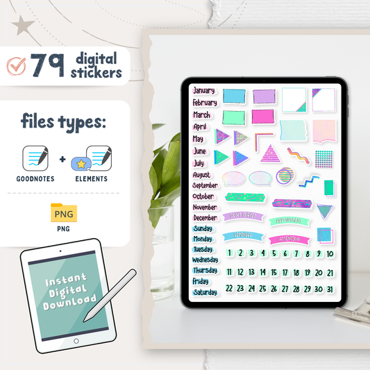 90s Neon Digital Planner Stickers